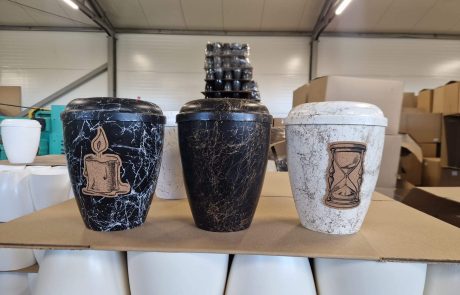 Wszystkie urny powstają na naszych maszynach i są dostępne wyłącznie u nas oraz u naszych partnerów – hurtowni funeralnych w Polsce. Dzięki temu nasi klienci mają pewność, że otrzymują produkty unikalne na rynku. W ofercie posiadamy urny metalowe, plastikowe i biodegradowalne, dostępne od ręki.
